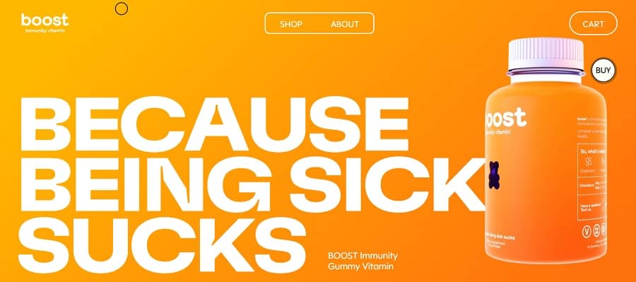 When it comes to analogous color schemes, you’ll see color combinations repeated, but the hues of those choices vary. Boost uses yellow and orange into a red-orange, but they keep the colors quite vivid. Other examples may go to almost peach or pale yellow, but Boost shows the vibrancy of their product by leaving the pop there. Even though it isn’t analogous, we love the little pop of the purple gummy bear to show off their product and grab interest.