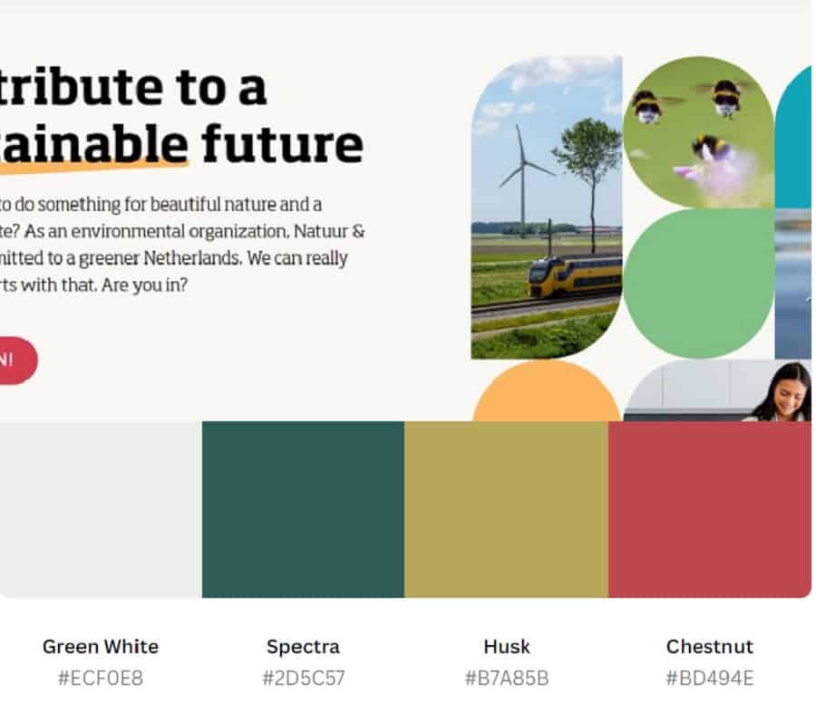 Natuur & Milieu utilizes a blue and green color scheme. Note how it chose muted colors and a neutral background so the text still contrasts nicely with the webpage and remains readable. As you move down the page, the design morphs into different shades of blue and green and even has a slight gradient effect. These shades live next to each other on the color wheel. It’s gone deeper into the circle and chosen lighter hues in the pastel family. You can do something similar with bolder blues and greens.