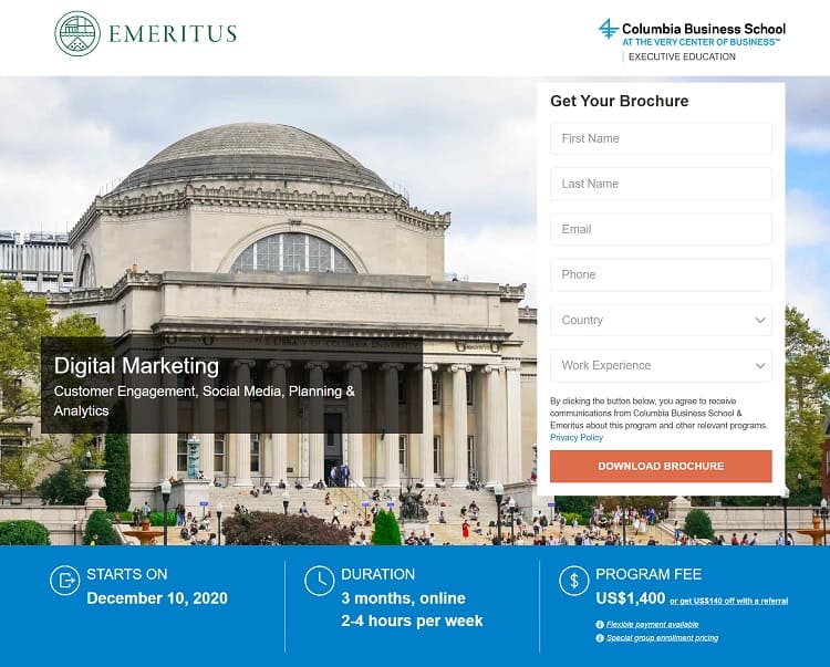 If you’re looking for digital marketing courses with expert advice, the professor is David Rogers, a globally-recognized teacher about brands and marketing strategies. Columbia is a well-respected school with high standards.