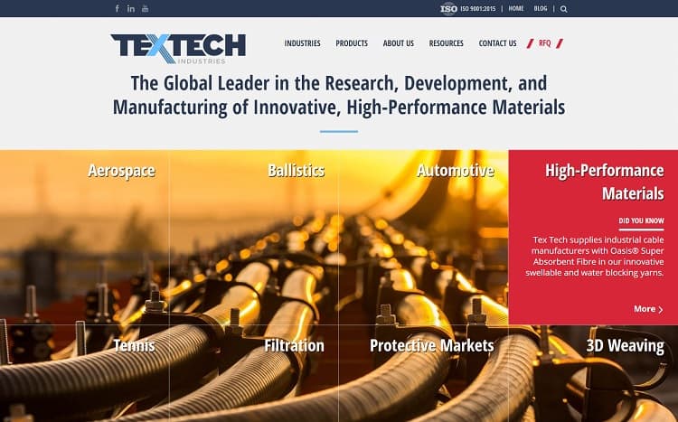 One way TexTech stands out from its competition is through the level of research and market knowledge it provides. The minute you land on its page, you see the heading that reads, “The global leader in the research, development and manufacturing of innovative, high-performance materials.” The words make it clear that the company is on the cutting-edge of technology in aerospace, automotive and ballistics.