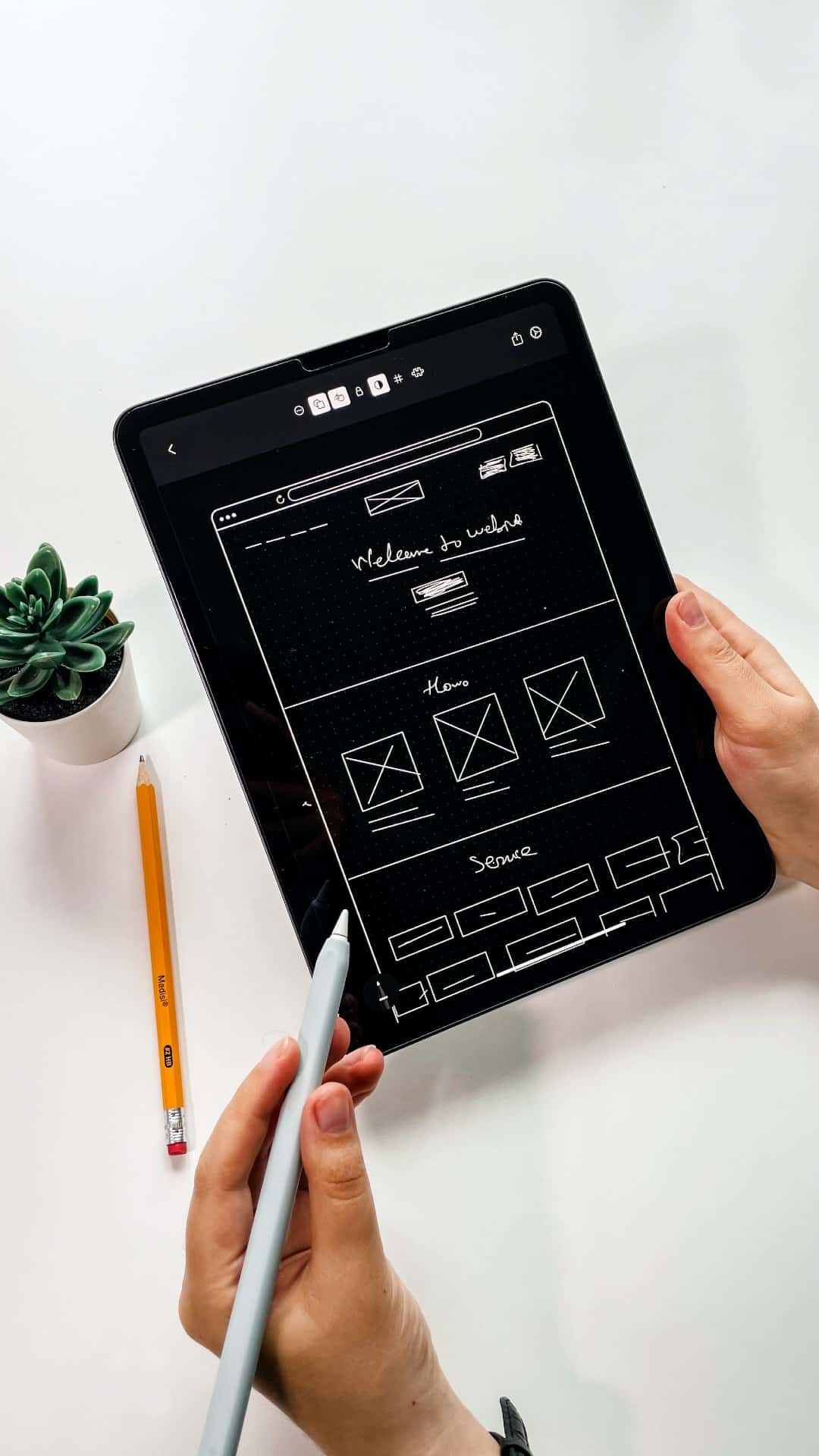 A wireframe usually lacks any graphics or fancy fonts — after all, it’s just a rough draft. Some people draw the wireframe on a piece of paper. There are also programs like Lucidchart, Whimsical and Justinmind that let you design a digital wireframe to see how it would look on a user’s phone.