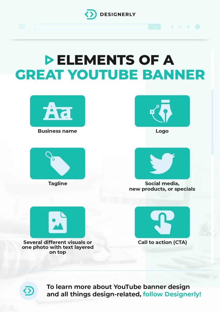 Learning how to make a YouTube banner that grabs attention requires a lot of planning. You’ll want to include your business name, logo, tagline and a call to action (CTA).