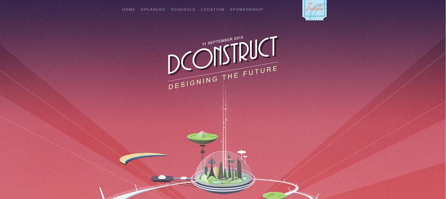 DConstruct is actually an older event website but the design is so unique we wanted to include it as an example anyway. It has a Jetson’s retro futuristic feel that grabs the user and makes them want to read more.