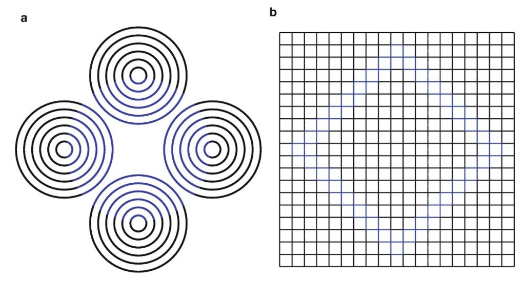The Hering illusion makes straight lines look curved. If you draw two straight lines and place them on top of a radial background — think bicycle spokes — they appear to bend in the middle. This is because of spatial warping and your brain’s inability to process the image’s complexity.