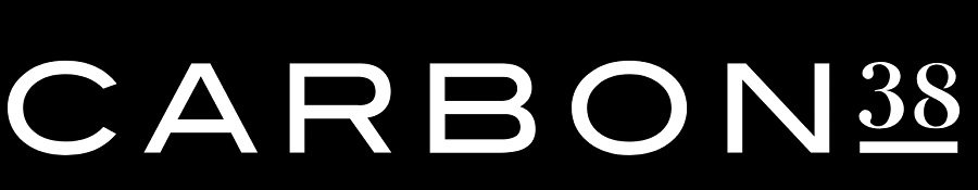 Carbon 38 uses two distinct fonts in their logo. The word “Carbon” is in the larger font and is a sans serif, all capital letters rendering. The number “38” is in a serif font with an underline. The font size is slightly smaller to draw attention to the word “Carbon.”