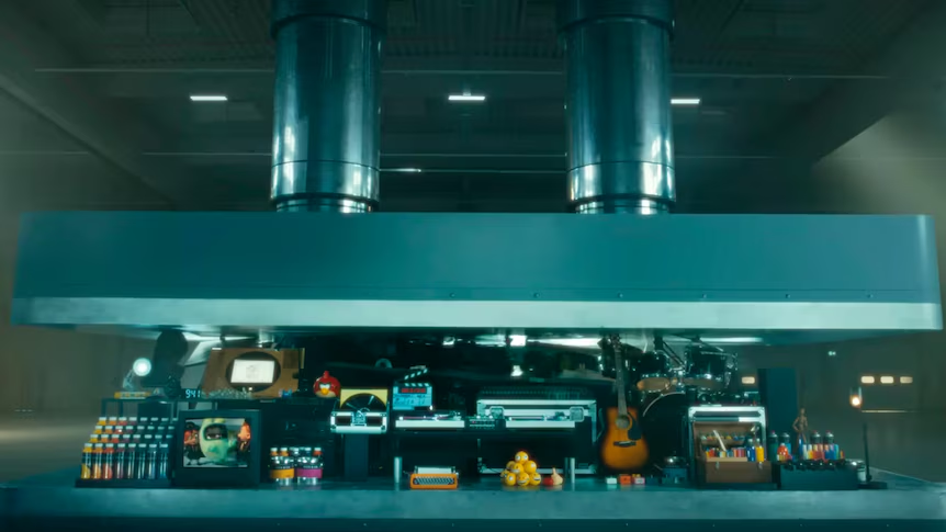 A 2024 Apple ad depicted a hydraulic press crushing creative tools, including cameras, paints, guitars, books and more objects. The commercial was intended to symbolize how all of their functions could now be achieved with the new iPad Pro.