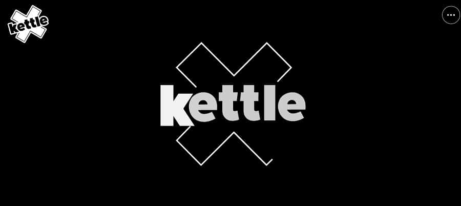 Kettle features a ton of negative space. When you first land on their page, you see the logo in the upper left corner, a hamburger menu in the upper right and an animated graphic that segues into an image.
