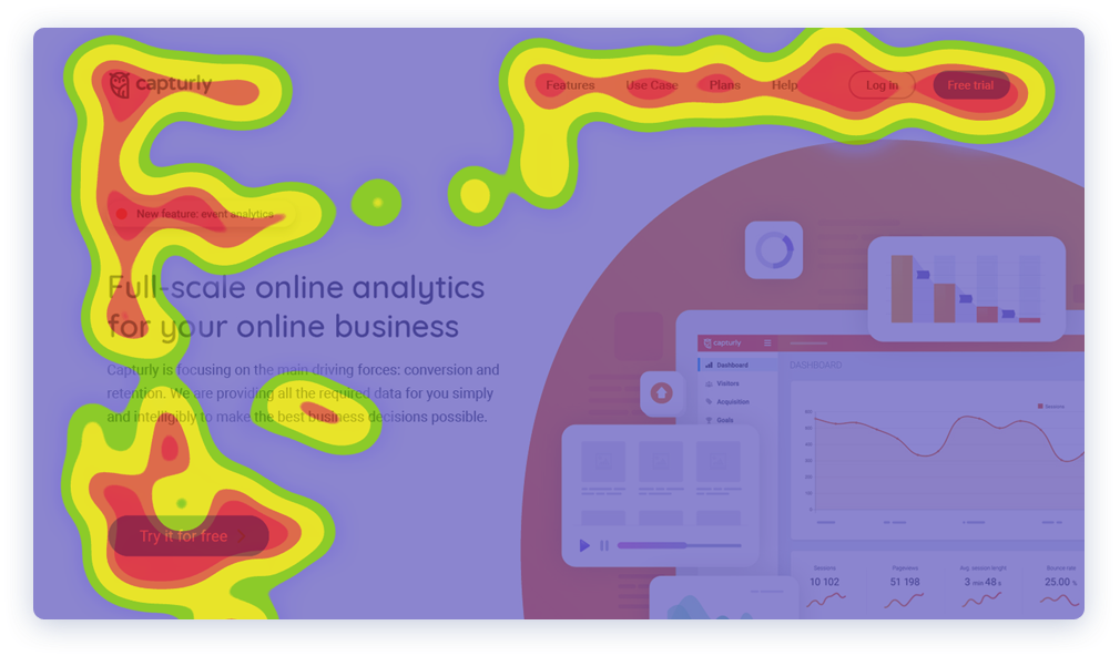 - Which areas of the site attract the most clicks? – From this, it is identifiable what visitors’ top priorities are.